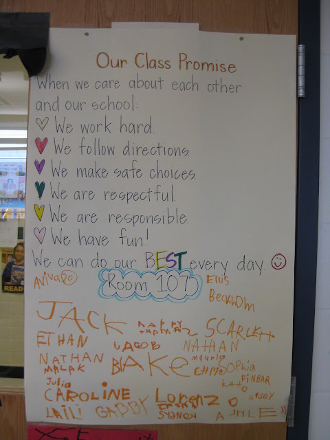 In my classroom we say the pledge of allegiance everyday as American citizens and then we recite "Our Class Promise" as well to make sure that we remember what it takes to make the day amazing. We reinforce behaviors and strategies when we say our promise. It's a great way to start the day and comes filled with so many daily opportunities to discuss and reflect on classroom community.