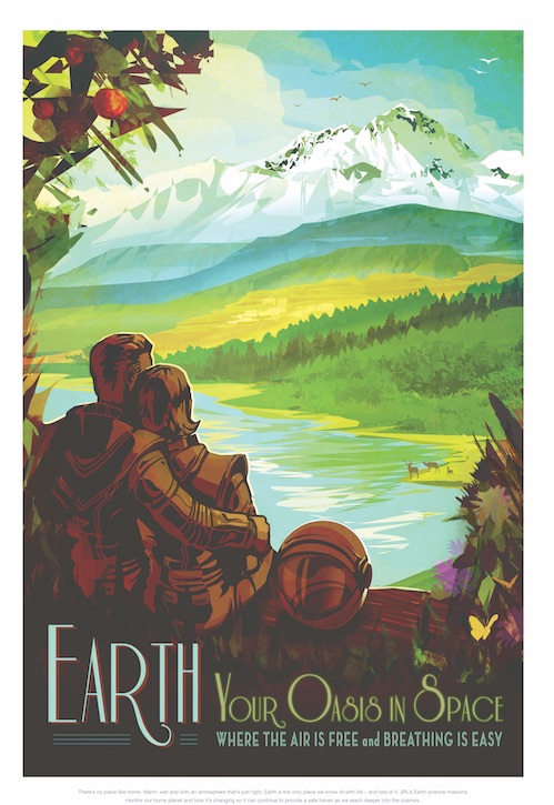 Space Tourism Posters: Fourteen space travel posters of colorful, exotic space settings are now available free for downloading and printing.